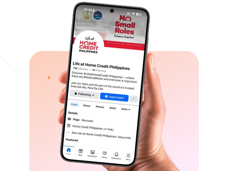 At Home Credit Philippines, we believe that everyone has something special to offer. Our motto "No Small Roles, Everyone is Important" is at the heart of everything we do. We think diversity makes our company better and every single job and person here plays a big part in our success.