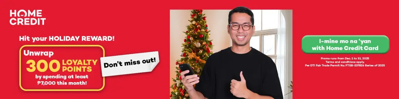 Earn a reward! Get 300 loyalty points when you spend at least P7000 on your transactions with Home Credit Card or at least P3500 for HCQWARTA